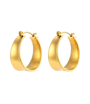 Sophisticated hoop with a feather-like engraved detail on the inside of the earrings.